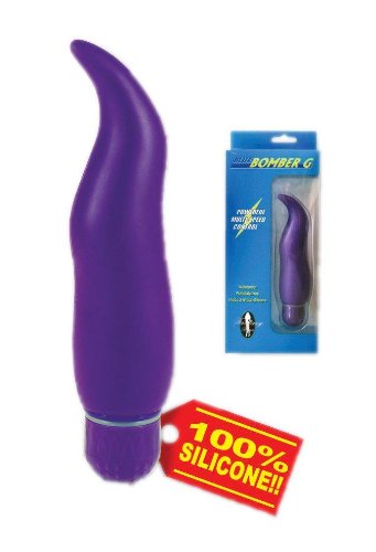 Curvy, tapered, and perfect for G-spot stimulation, the Blue Bomber G features a curvy body and a tapered tickling end for pinpoint stimulation. Enjoy it externally to tickle the nipples or clitoris, or internally for G-spot massage. Vibrations, centered near the tip, are turned on and adjusted with a rounded dial base. The smooth silicone material warms quickly to body temperature, and is easily flexible for comfort. Waterproof, the Blue Bomber G-Spot Vibrator can be used in a tub, shower, or pool for underwater excitement. Use only water-based lubricants with this vibrator.